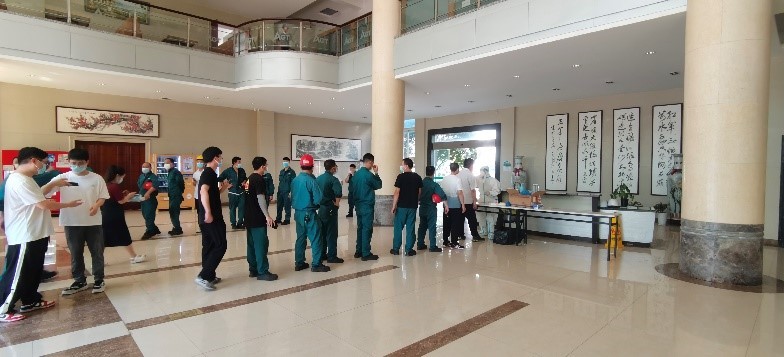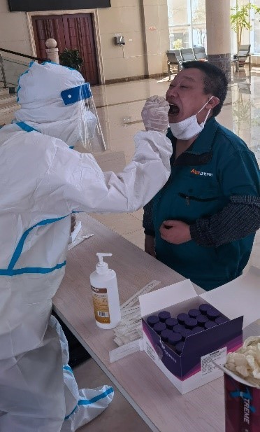 爲(wei)确保此次核酸檢(jian)測(ce)工(gong)作(zuò)安(an)全高(gao)效有(yǒu)序進(jin)行,公(gōng)司疫情防控辦(bàn)公(gōng)室按照疫情防控要求,積極做好檢(jian)測(ce)點布置、人(ren)員(yuan)分(fēn)流安(an)排(pai)等(deng)各項(xiang)前(qian)期準備(bei)工(gong)作(zuò)。上午9時30分(fēn),在(zai)公(gōng)司的(de)統一(yi)組織下,全體(ti)員(yuan)工(gong)積極參與、有(yǒu)序排(pai)隊(duì),逐一(yi)進(jin)行了(le)咽拭子(zi)采集(ji)工(gong)作(zuò)。檢(jian)測(ce)過(guo)程(cheng)中(zhong),員(yuan)工(gong)嚴格按照疫情防控要求,全程(cheng)佩戴口罩,保持安(an)全間隔距離依次進(jin)行采樣。員(yuan)工(gong)采集(ji)完畢後(hou)有(yǒu)序離場(chang),避免人(ren)員(yuan)聚(ju)集(ji)。截至上午11點,公(gōng)司參與核酸檢(jian)測(ce)員(yuan)工(gong)300人(ren)。本(ben)次核酸檢(jian)測(ce)工(gong)作(zuò)整體(ti)迅速(su)、有(yǒu)序、高(gao)效。